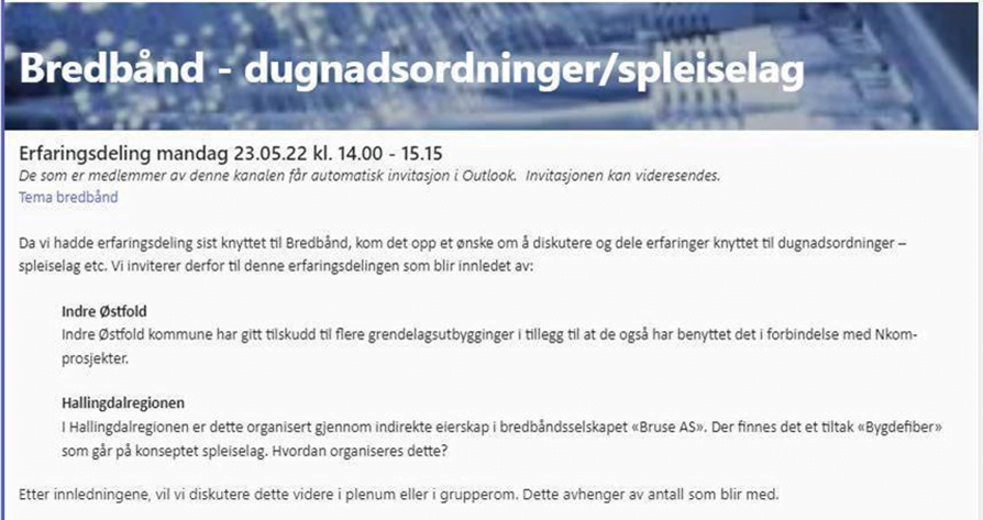 Erfaringsdeling: Bredbånd – dugnadsordninger/spleiselag